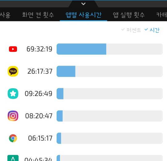 지난 한 달 간 스마트폰 사용 내역을 보면 '시간이 없어서'라는 핑계를 댔던 것이 정말 부끄러워진다. 유튜브에 69시간, 카카오톡에 26시간을 사용했다. 그 시간들이 얼마나 의미없이 흘러간 시간인지는 나 스스로가 가장 잘 안다.